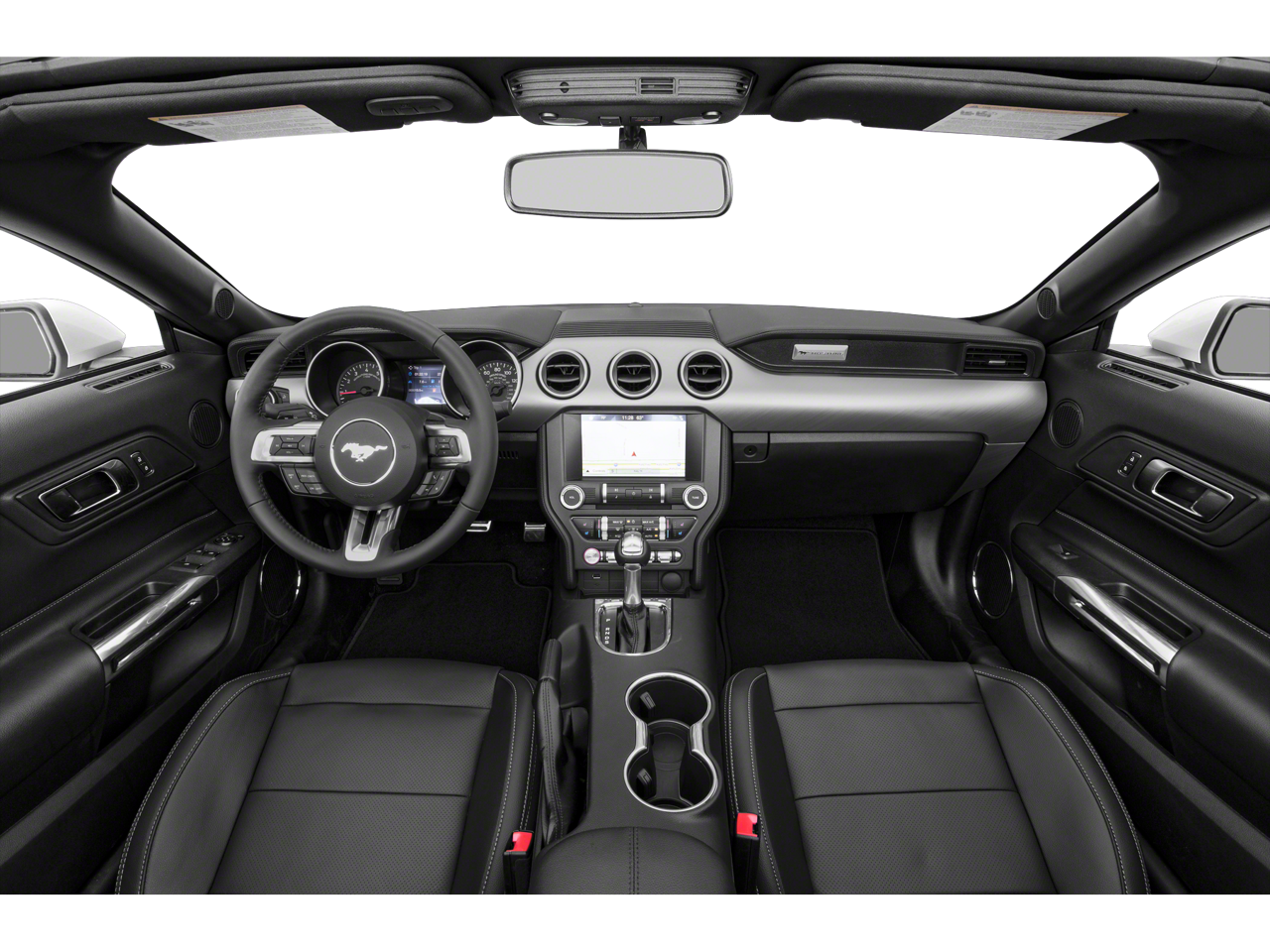 Equipped with 4-Wheel Disc Brakes, ABS brakes, Air Conditioning, Alloy wheels, AM/FM Stereo, Auto High-beam Headlights, Auto-dimming Rear-View mirror, Brake assist, Bumpers: body-color, Compass, Convertible roof lining, Delay-off headlights, Driver door bin, Driver vanity mirror, Dual front impact airbags, Dual front side impact airbags, Electronic Stability Control, Emergency communication system: 911 Assist, Exterior Parking Camera Rear, Four wheel independent suspension, Front anti-roll bar, Front Bucket Seats, Front Center Armrest, Front reading lights, Fully automatic headlights, Glass rear window, Illuminated entry, Knee airbag, Leather Shift Knob, Low tire pressure warning, Occupant sensing airbag, Outside temperature display, Overhead console, Panic alarm, Passenger door bin, Passenger vanity mirror, Power convertible roof, Power door mirrors, Power steering, Power windows, Radio data system, Rain sensing wipers, Rear anti-roll bar, Rear window defroster, Remote keyless entry, Security system, SiriusXM Radio, Speed control, Speed-sensing steering, Speed-Sensitive Wipers, Steering wheel mounted audio controls, SYNC 3 Communications & Entertainment System, Tachometer, Telescoping steering wheel, Tilt steering wheel, Traction control, Trip computer, Variably intermittent wipers, Voltmeter, and Wheels: 18 x 8 Machined-Face Aluminum.