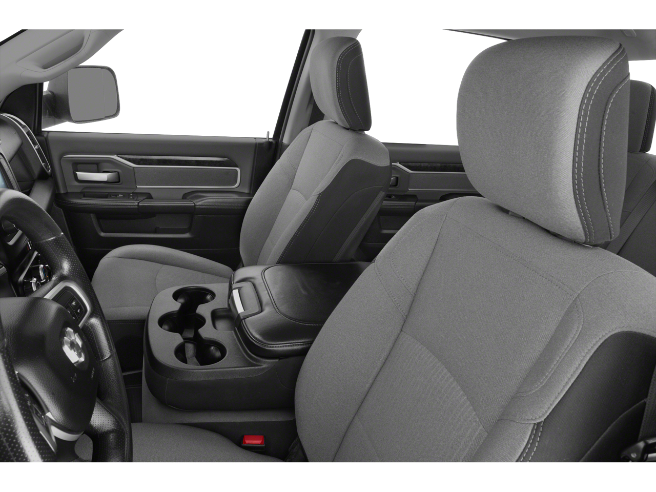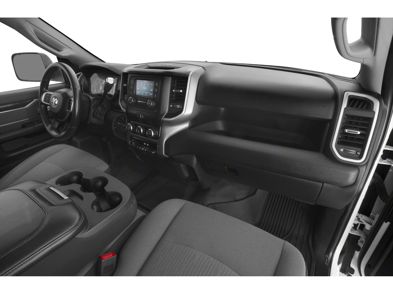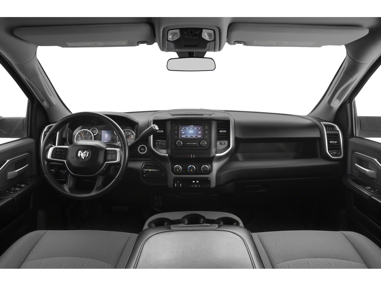 Equipped with Quick Order Package 2HZ Big Horn, 2 Way Rear Headrest Seat, 3.73 Axle Ratio, 4 Way Front Headrests, 4-Wheel Disc Brakes, 40/20/40 Split Bench Seat, 6 Speakers, ABS brakes, Active Noise Control System, Air Conditioning, AM/FM radio, Brake assist, Bumpers: chrome, Center Hub, Center Stack Storage Drawer, Chrome Flat Cab-Length Side Steps, Cloth 40/20/40 Bench Seat, Compass, Delay-off headlights, Driver door bin, Dual front impact airbags, Dual front side impact airbags, Electronic Stability Control, Electronically Controlled Throttle, Front anti-roll bar, Front Center Armrest w/Storage, Front License Plate Bracket, Front reading lights, Fully automatic headlights, GPS Antenna Input, Heated door mirrors, Illuminated entry, Integrated Voice Command w/Bluetooth®, Low tire pressure warning, Manual Adjust 4-Way Driver Seat, Manufacturer's Statement of Origin, Occupant sensing airbag, Outside temperature display, Overhead airbag, Overhead console, Panic alarm, ParkView Rear Back-Up Camera, Passenger door bin, Passenger vanity mirror, Power door mirrors, Power steering, Power windows, Radio data system, Radio: Uconnect 3 w/5 Display, Rear anti-roll bar, Rear Folding Seat, Rear seat center armrest, Rear step bumper, Remote keyless entry, Speed control, Tachometer, Tilt steering wheel, Tip Start, Tow Hooks, Traction control, Trip computer, Turn signal indicator mirrors, Variably intermittent wipers, Vendor Painted Cargo Box Tracking, Voltmeter, and Wheels: 18 x 8.0 Steel Chrome Clad.