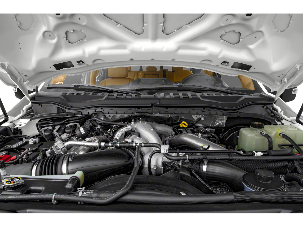 Equipped with 5th Wheel/Gooseneck Hitch Prep Package, Black Appearance Package (6 Ebony Black Angular Running Boards, Black Out Surrounds LED Only Headlamps, Body-Color Front & Rear Bumpers, Ebony Black Painted Front Grille Bars, Ebony Black Painted Mirror Caps, Rear Wheel Well Liners (Pre-Installed), Tough Bed Spray-In Bedliner, and Wheels: 20 High-Gloss Black Premium Painted Alum), GVWR: 10,000 lb Payload Package, High Capacity Trailer Tow Package, Lariat Ultimate Package (Ambient Lighting - Fixed Color, Easy Entry®/Exit Memory Driver's Seat Feature, Intelligent Access w/Push-Button Start, LED Box Lighting, Memory Power-Adjustable Pedals, Power Heated/Ventilated Driver Seat w/Memory, Power Heated/Ventilated Passenger Seat, Power Telescoping/Tilt Steering Wheel/Column, PowerScope Trailer Tow Mirrors w/Memory, Remote Start System, Remote Tailgate Release, and Tailgate Step & Handle), Order Code 608A, Pro Trailer Backup Assist - High Capacity (Lane Departure Warning System and Ultimate Trailer Tow Camera System), 10 Speakers, 4-Wheel Disc Brakes, ABS brakes, Adjustable pedals, Air Conditioning, Alloy wheels, AM/FM radio: SiriusXM with 360L, Auto High-beam Headlights, Auto-dimming Rear-View mirror, Automatic temperature control, Brake assist, Bumpers: chrome, Compass, Delay-off headlights, Driver door bin, Driver vanity mirror, Dual front impact airbags, Dual front side impact airbags, Electronic Stability Control, Emergency communication system: SYNC 4 911 Assist, Engine Block Heater, Exterior Parking Camera Rear, Flow-Through Console, Front anti-roll bar, Front Bucket Seats, Front Center Armrest, Front dual zone A/C, Front fog lights, Front Leather Seating Surfaces 40/Console/40, Front reading lights, Fully automatic headlights, Heated door mirrors, Heated Steering Wheel, Illuminated entry, Leather steering wheel, Low tire pressure warning, Navigation system: Connected Navigation, Outside temperature display, Overhead airbag, Overhead console, Panic alarm, Passenger door bin, Passenger vanity mirror, Power door mirrors, Power driver seat, Power passenger seat, Power steering, Power windows, Power-Deployable Running Boards, PowerScope Trailer Tow Mirrors w/Heat, Radio data system, Radio: B&O Sound System by Bang & Olufsen, Rain-Sensing Windshield Wipers, Rear Parking Sensors, Rear reading lights, Rear seat center armrest, Rear step bumper, Rear window defroster, Remote keyless entry, Security system, SiriusXM Radio w/360L, Speed control, Split folding rear seat, Steering wheel mounted audio controls, SYNC 4 w/Enhanced Voice Recognition, Tachometer, Telescoping steering wheel, Tilt steering wheel, Traction control, Trip computer, Turn signal indicator mirrors, Twin Panel Power Moonroof, Universal Garage Door Opener (UGDO), Upfitter Switches (6), Variably intermittent wipers, and Wheels: 18 Bright Machined Cast Aluminum.