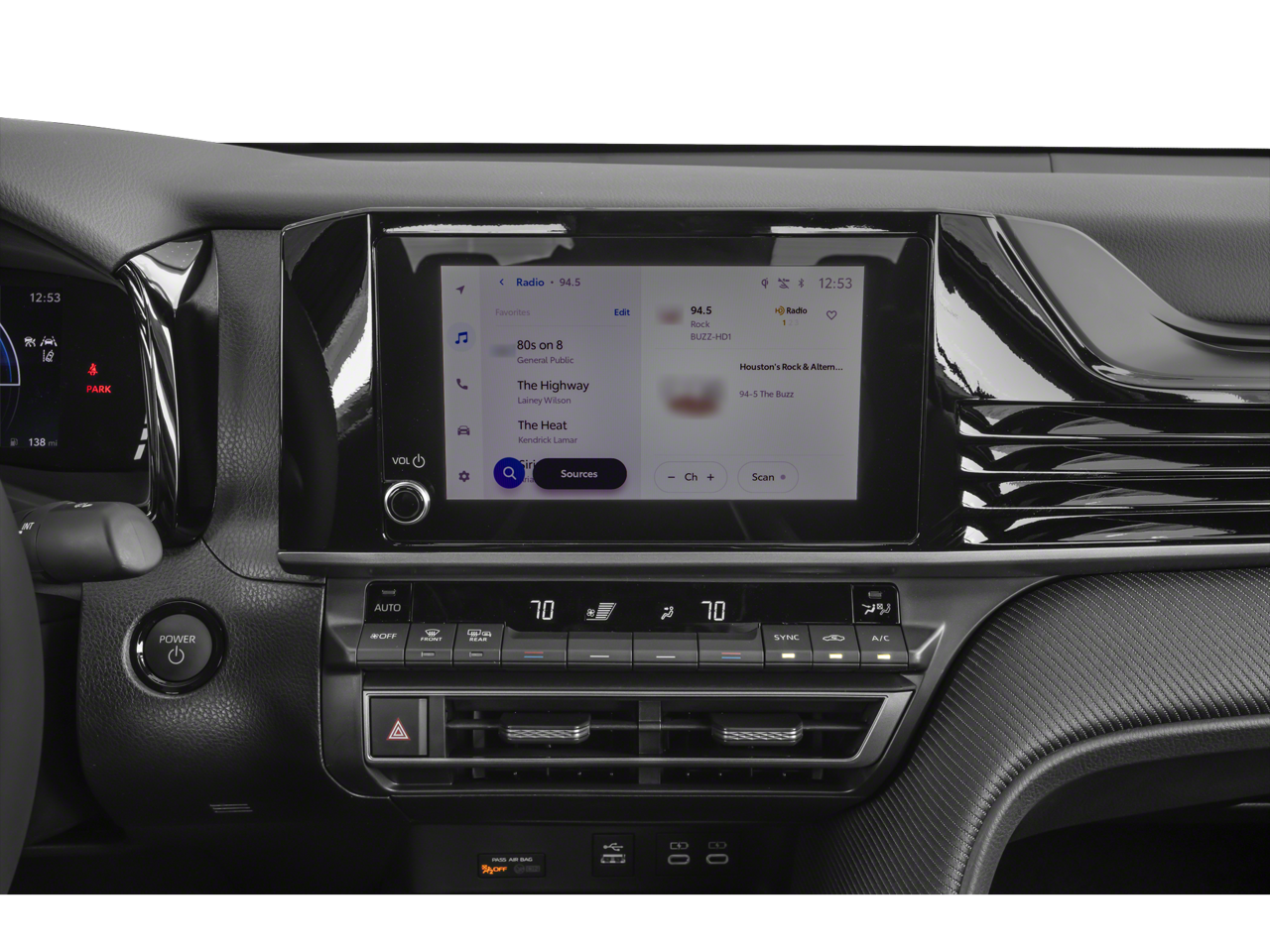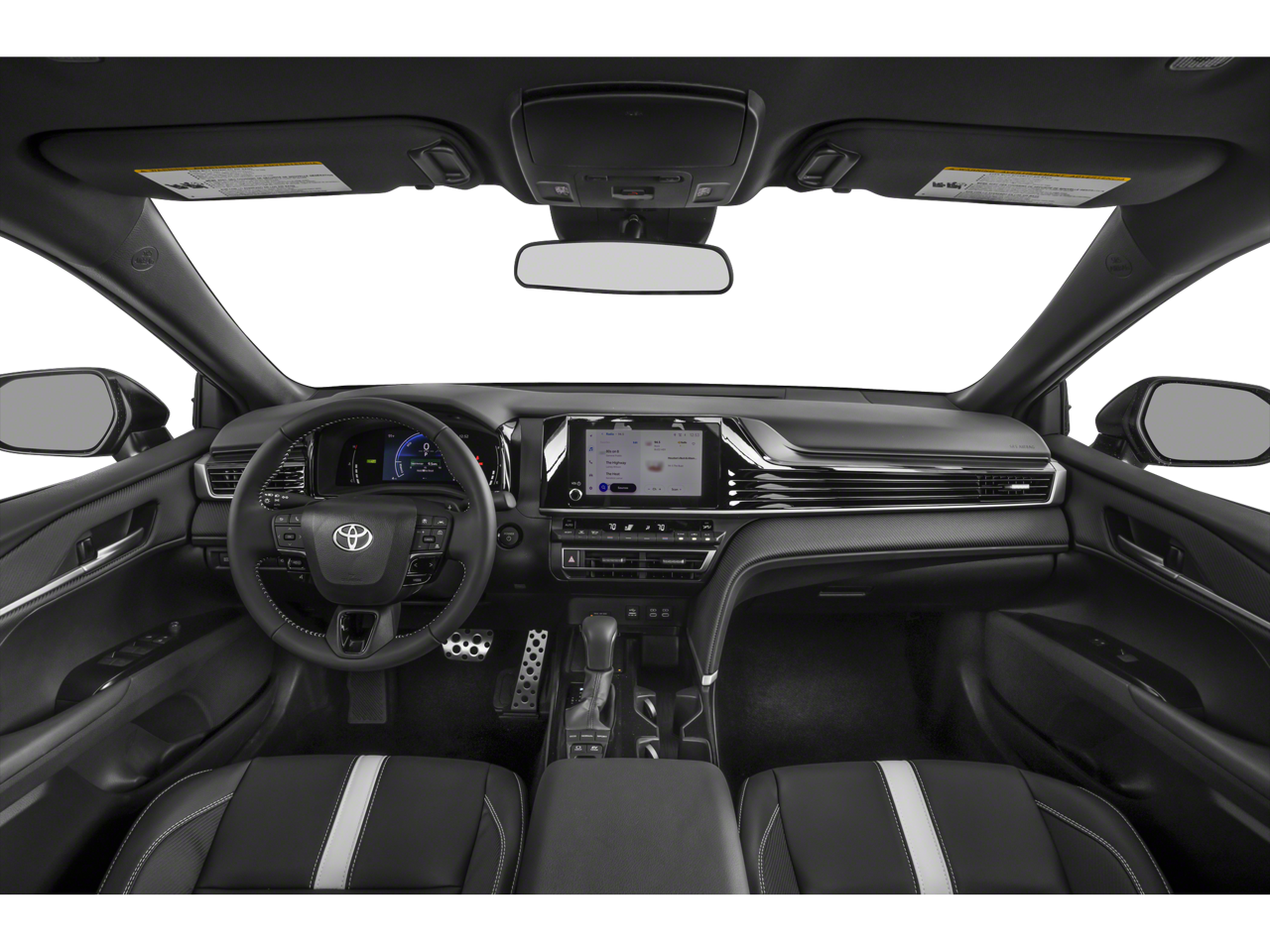 Equipped with 4-Wheel Disc Brakes, 6 Speakers, ABS brakes, Air Conditioning, Alloy wheels, AM/FM radio: SiriusXM, Apple CarPlay/Android Auto, Auto High-beam Headlights, Automatic temperature control, Brake assist, Bumpers: body-color, Delay-off headlights, Driver door bin, Driver vanity mirror, Dual front impact airbags, Dual front side impact airbags, Electronic Stability Control, Emergency communication system: Safety Connect (up to 10-year trial subscription), Exterior Parking Camera Rear, Four wheel independent suspension, Front anti-roll bar, Front Bucket Seats, Front Center Armrest, Front dual zone A/C, Front reading lights, Fully automatic headlights, Heated door mirrors, Illuminated entry, Knee airbag, Leather Shift Knob, Leather steering wheel, Low tire pressure warning, Occupant sensing airbag, Outside temperature display, Overhead airbag, Overhead console, Panic alarm, Passenger door bin, Passenger vanity mirror, Power door mirrors, Power driver seat, Power steering, Power windows, Radio data system, Radio: Toyota Audio Multimedia w/12.3 Touchscreen, Radio: Toyota Audio Multimedia w/8 Touchscreen, Rear anti-roll bar, Rear reading lights, Rear seat center armrest, Rear side impact airbag, Rear window defroster, Remote keyless entry, Security system, SofTex & Fabric Seat Trim, Speed control, Speed-sensing steering, Split folding rear seat, Spoiler, Steering wheel mounted audio controls, Telescoping steering wheel, Tilt steering wheel, Traction control, Trip computer, Turn signal indicator mirrors, Variably intermittent wipers, and Wheels: 18 Black-Finished Alloy.